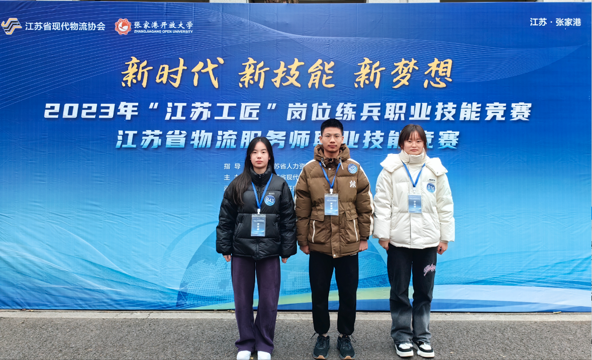 12月22日至23日,我院选派22级现代物流管理专业彭宏森、刘可蒙、魏楚楚为选手,孙静静为指导教师的代表队,赴江苏张家港参加2023年江苏省物流服务师“江苏工匠”岗位练兵职业技能学生个人赛,我院参赛选手彭宏森获得二等奖、刘可蒙、魏楚楚获得三等奖的好成绩。