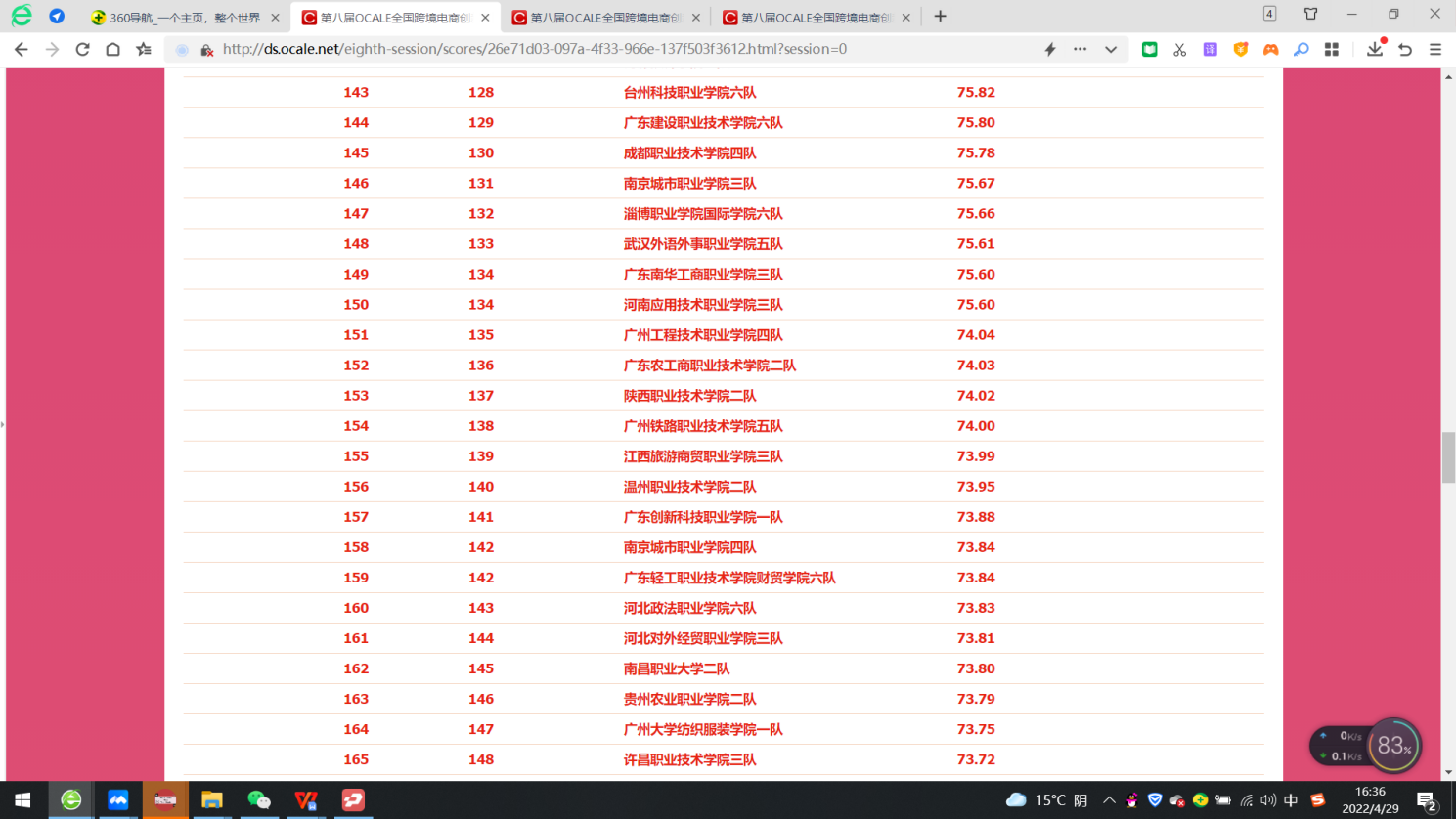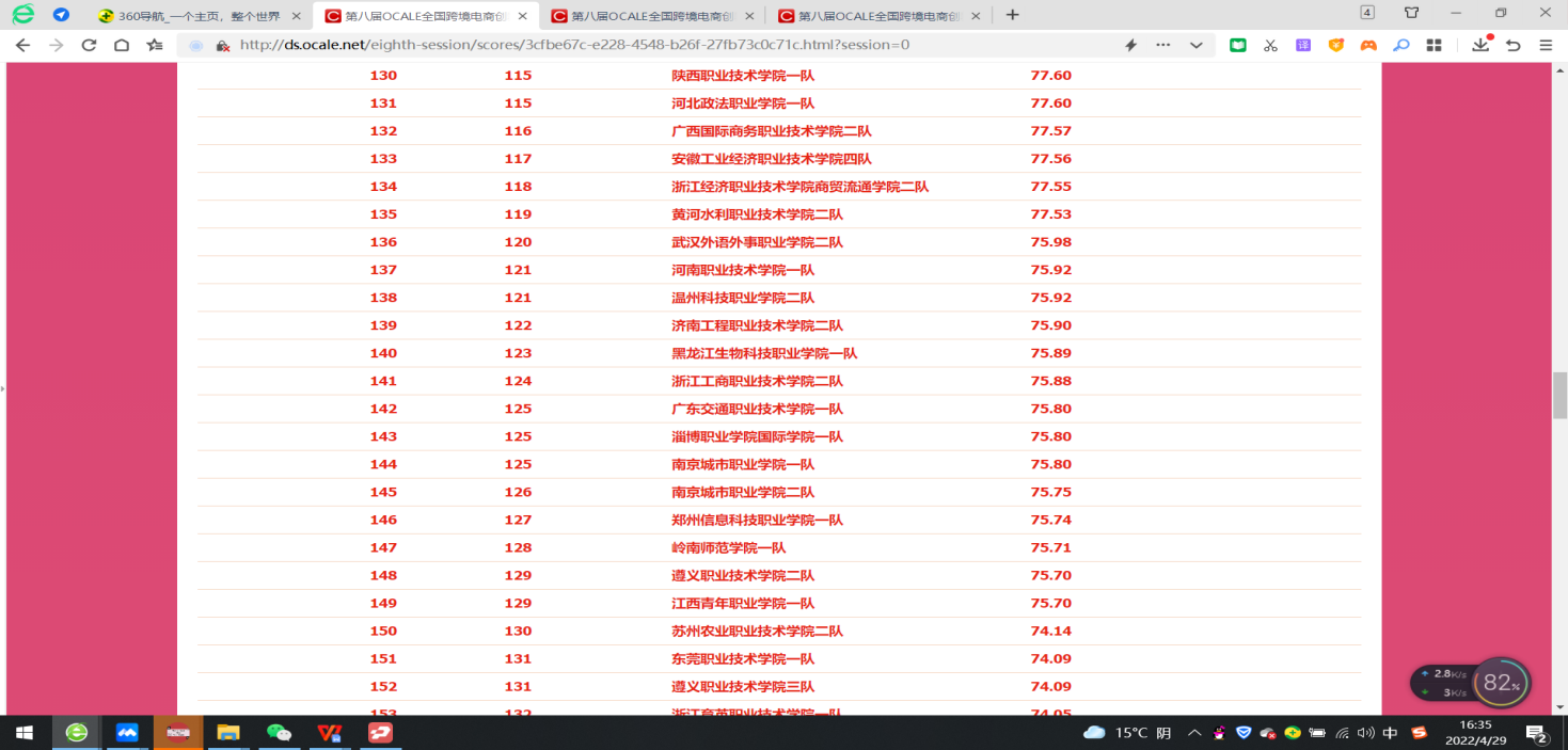 2022年4月12日-14日,数字财商学院21级国际商务专业丁凯、陈许鑫、21级跨境电子商务专业高慧、张佳骏、张嘉慧、陈学文、胡小芳、沈钰莹、周蕊、曹杰、毛雨飞、申俊杰同学在指导老师王倍、滕静涛的带领下,组成4支队伍,代表我校参加了第八届OCALE全国跨境电商创新创业能力大赛(春季赛),我校4个代表队与来自全国573所高职院校的代表队展开角逐,荣获4项团体二等奖的好成绩。
