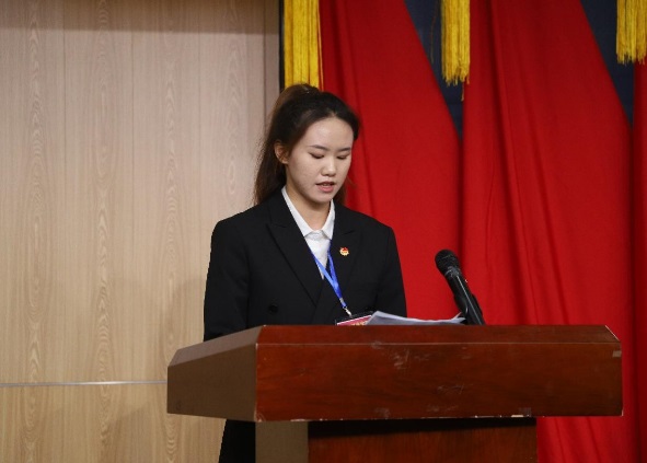 中午12点30分,由主持人准时宣布大会开始,进入第一环节——奏唱国歌。随后院党总支副书记刘晓艳致开幕词,分别对米兰平台团总支过去一年的团的工作做出了评价并对未来一年提出了新的期待,相信在院党总支和团总支的正确领导下,本次大会一定能够圆满完成各项任务。刘晓艳老师的致辞语重心长、饱含期望,充分体现了院党总支对全院千余名团员的亲切关怀和殷切希望。