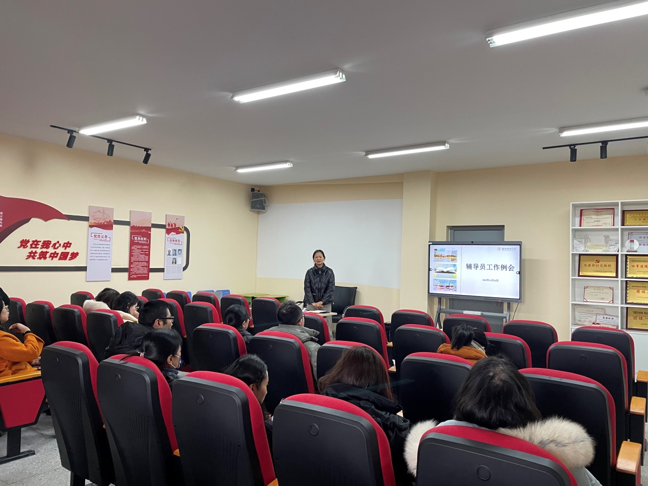 会上,刘副书记传达了学校学生工作例会的会议精神,并针对学院的实际情况对辅导员近期工作进行了布置和安排,特别强调:一是加强学生的安全教育,当前正值秋冬季,是火灾高发期,要求辅导员通过深入宿舍、召开主题班会等多种形式开展安全宣传工作,切实提高学生的安全责任意识;二是加强学生的身心健康管理,以学校健康生活月为契机,引导学生养成良好健康的生活习惯和阳光的心理;三是加强学生进出校的动态管理,严格按照学校相关要求履行、审批请假手续,密切关注学生动态,做好精准把握;四是要求全体辅导员明确目标,统一思想,遵守辅导员工作纪律,守土尽责,加强合作,互融共通,扎实做好每项工作,以立德树人为根本任务,用爱心、耐心、关心来服务学生,发挥好辅导员的角色效能。