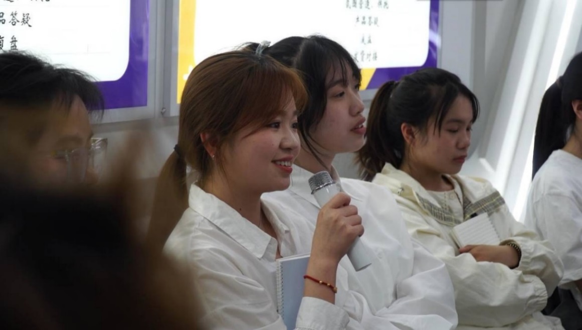 同学们经过观摩获得了不少直播心得以及感悟。如直播前须确定本场直播的时间和产品,提前熟悉产品,尽量想到别人想不到的卖点;确定直播所需道具,提前做好准备,防止手忙脚乱;确定本场直播的风格,尽量给观众带来新颖的感觉。直播中互动非常重要,可以想象成人与人聊天的平台;如果直播时间较长,为避免主播讲得过于枯燥,副播可以接续介绍下个产品,由主播看弹幕,掌控接下来的直播节奏,两人互帮互助将直播间氛围带起来。直播后进行复盘,建议主播先说今天场次的优点和缺点,其次再让同学补充,对于整场直播的风格可以做出适当的评价,最后一定要鼓励自己及同伴。