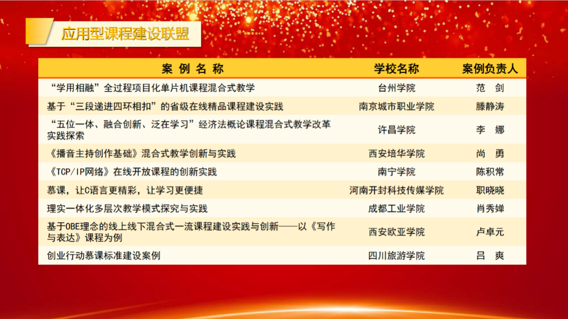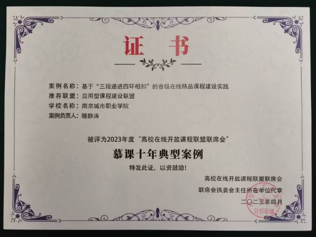 会议提出联盟未来要搭建好开放共享的教育机制,用好的典型案例来提升中国慕课与在线教育的建设水平,并对遴选出的“慕课十年经典案例”进行了公布,我院滕静涛老师负责申报的《基于“三段递进四环相扣”的省级在线精品课程建设实践》案例经所属联盟推荐和联席会专家组认定,被评为2023年度“高校在线开放课程联盟联席会”慕课十年典型案例,并编入“慕课十年典型案例集”(电子版)。今年3月,滕老师带领省级在线精品课程国际贸易实务课程团队凝练“基础建设-数字化建设-混合式教学建设”三阶段递进,1个翻转课堂教学模式+1个省级精品在线开放课程平台+1次“专业认识”课+4笔进出口订单环环相扣的实践经验,经学院推荐、教务处备案,向联席会成员单位应用型课程建设联盟申报“慕课十年典型案例”。