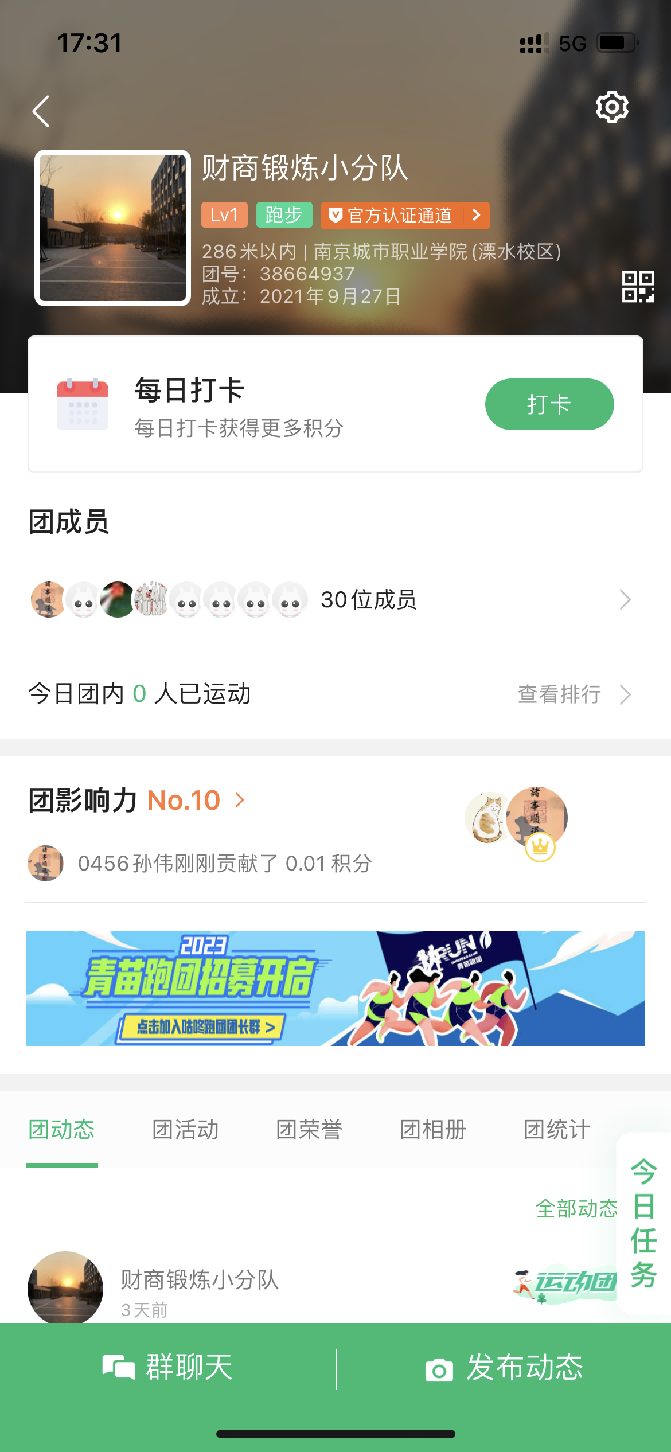为进一步推进全民健身运动的开展,提高我院教职工身体素质,展现团结向上、砥砺奋进新面貌,促进和谐校园文化建设,米兰平台分工会通过咕咚APP开展了“强身健体,幸福你我”健康打卡活动。