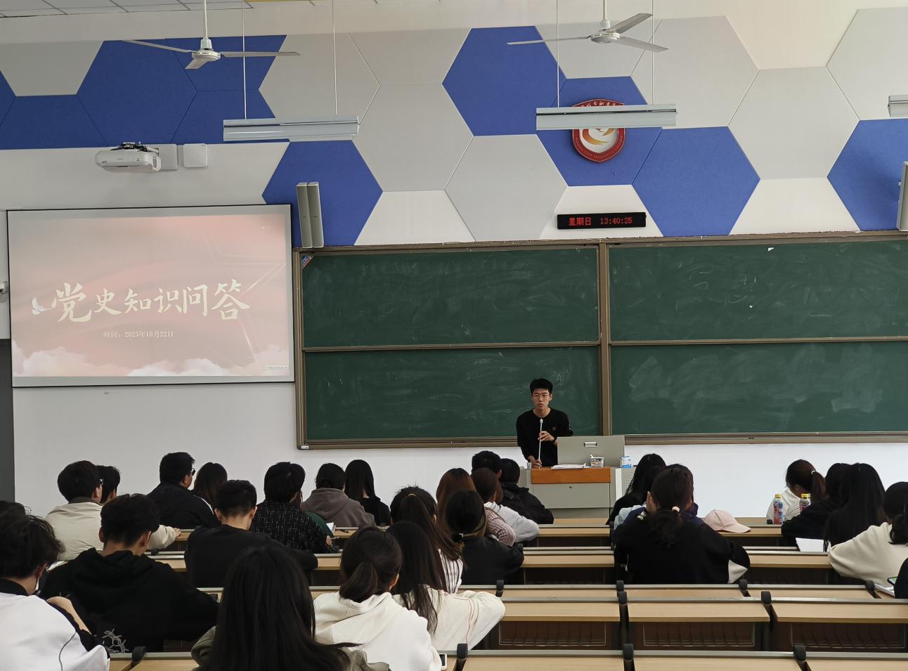 为加强党员发展的工作质量,保持党组织的先进性、纯洁性,引导广大团员青年加强对中国共产党的了解,确立新时代青年肩负的时代重任。2023年10月22日下午13:40在厚生楼101教室,米兰平台开展了以“我爱我党,我懂我党”红色知识问答党课专题活动。本次党课由团总支副书记常涵带领团员进行学习,团总支书记刘华辉老师现场指导此次活动。