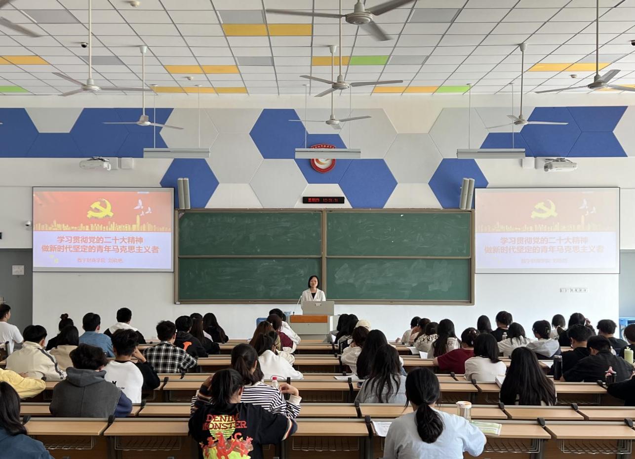 课程中,刘老师主要就什么是马克思主义、为什么要成为青年马克思主义者、如何做新时代坚定的青年马克思主义这三个问题展开讨论,详细阐述了青年应当如何在未来中去践行马克思主义,如何将习近平新时代中国特色社会主义思想内化于心、外化于行。刘老师表示,时代赋予青年选择理想的权利,青年理应以回报时代为目的,以报效祖国为最终理想,用个人力量汇聚中华民族伟大复兴的磅礴力量。作为新时代的中国青年,大家要坚定信仰,牢记共产主义远大理想,坚定中国特色社会主义共同理想,做新时代青年马克思主义者。课程内容真切的表达了对新时代中国青年的希望,同学们认真倾听刘老师所讲授的内容,纷纷表示收获颇丰。