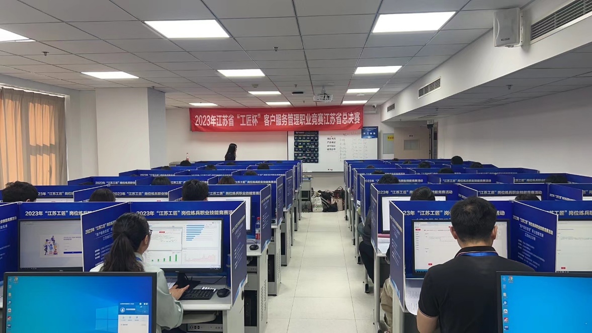 2023年10月29日至30日,由江苏省人社厅指导,江苏省电子商务协会主办的2023年“江苏工匠”岗位练兵职业技能竞赛“客户服务管理”赛项江苏省总决赛在我校新街口校区举行。经过来自全省13个地级市职业院校师生的激烈角逐,最终产生学生组一等奖9名、职工组一等奖6名及其他二等奖、三等奖、优秀奖共126名。