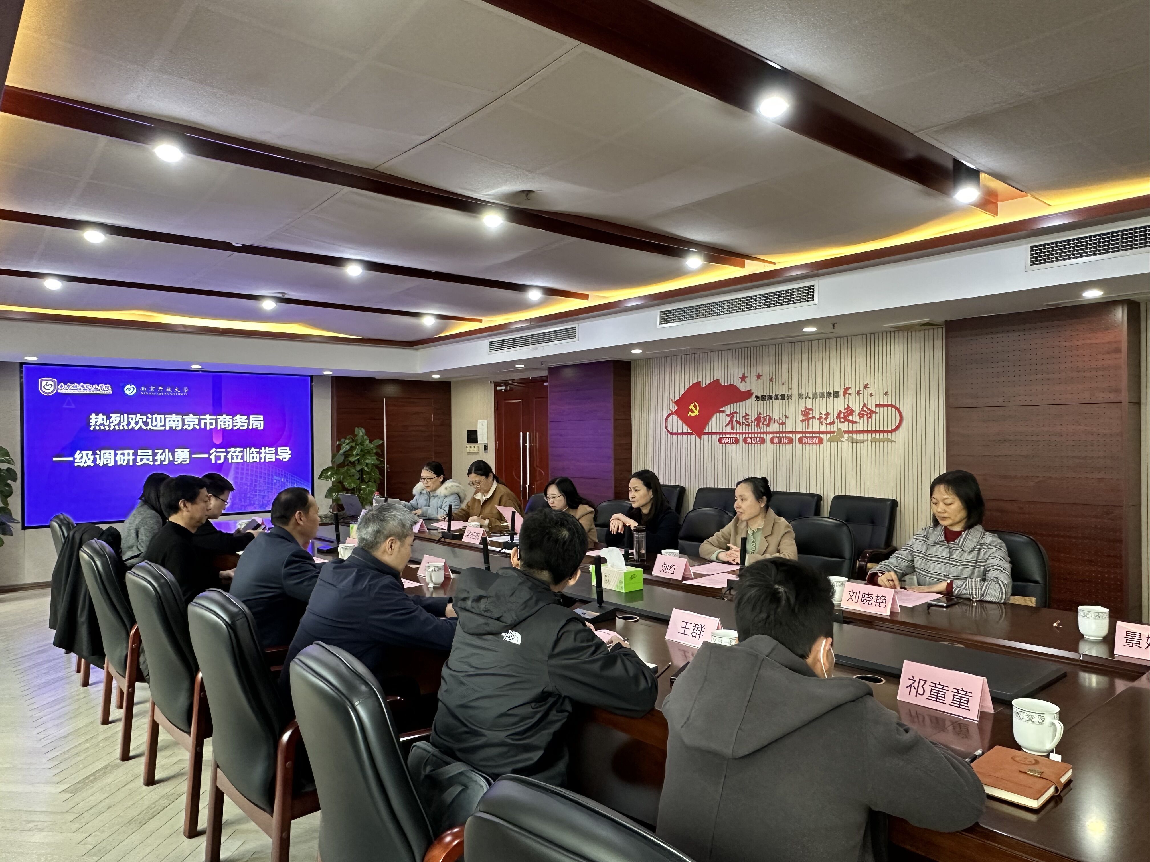 12月6日下午,南京市商务局一级调研员孙勇一行就双百培育项目来我校新街口校区调研交流。校党委委员、副校长张煌,米兰平台书记、院长刘红,招生与就业处副处长常征旗,米兰平台副书记、副院长刘晓艳和相关老师出席会议。