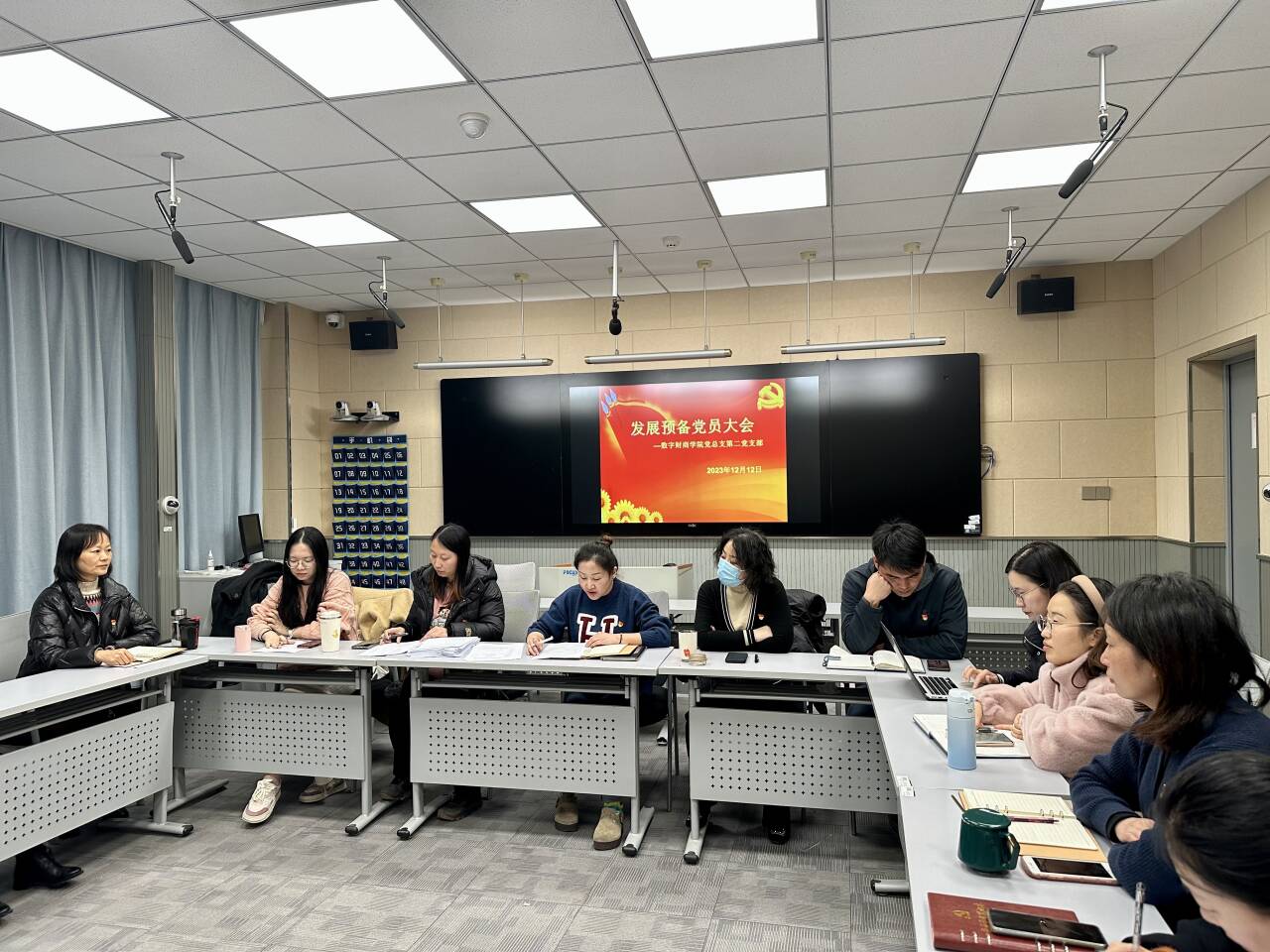 2023年12月12日下午13:00米兰平台党总支第二党支部在厚生楼303室召开预备党员发展大会,讨论张源等12名发展对象接收为预备党员等相关事宜。本次大会由米兰平台党总支第二党支部书记汪洋主持。