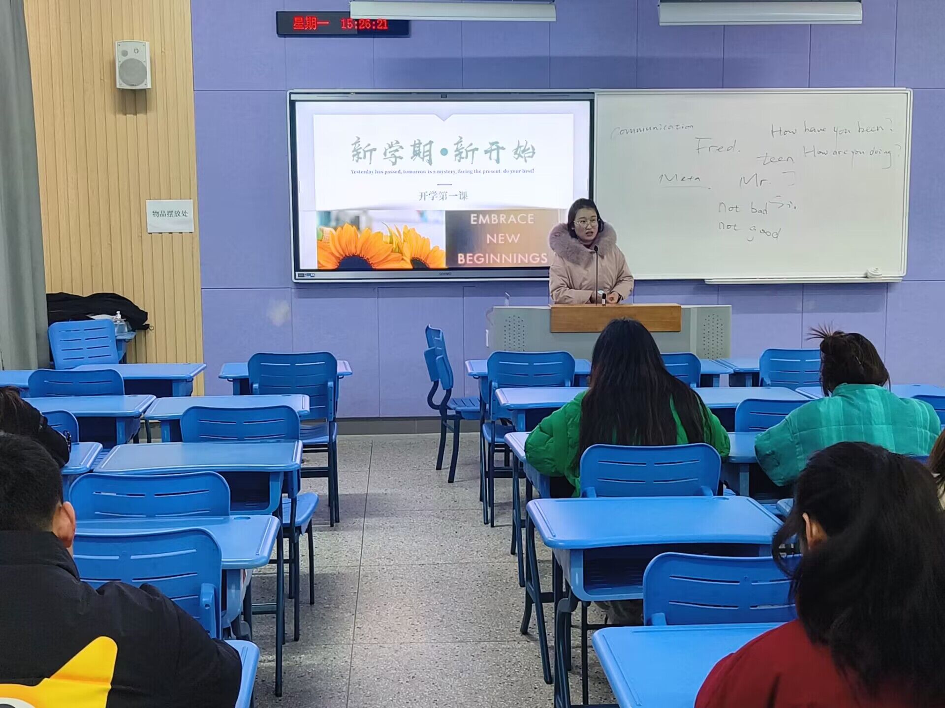 “新学期·新开始”的主题班会从三方面展开。围绕生命安全教育,辅导员以深刻吸取南京“2.23”火灾事故教训为切入点,敲响安全警钟,引导学生树立“安全第一”的思想,强调人人都是安全责任人,提高学生的安全防范意识和防范能力,守护生命健康;围绕回顾与展望,总结上学期的学习情况,规划新学期的个人计划,包括学习目标、时间管理、学习方法等,引导学生收好心,将精力集中到紧张的学习中,瞄准方向追逐梦想;围绕班级建设,设定了切实可行的班级建设目标,明确发展方向和动力,强调班级纪律和班风建设的重要性,鼓励同学们相互监督,共同维护良好的班级环境。