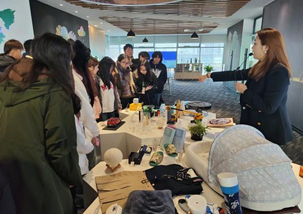 随后,师生们一起来到了未迟数字技术有限公司会议室,公司为同学们准备了内容丰富的介绍与讲解。通过整合营销部门钱慧经理认真专业的演讲,同学们了解了为什么未迟被称为跨境电商品牌出海的“加速器”。在帮助中国企业品牌DTC出海的过程中,始终要注重用数据和效果说话, 让世界任何一个角落的企业都可以把产品汇集整合并且销往全球。讲座结束后,感兴趣的同学与讲课老师还进行了一些有关跨境电商未来就业问题的深入沟通交流。