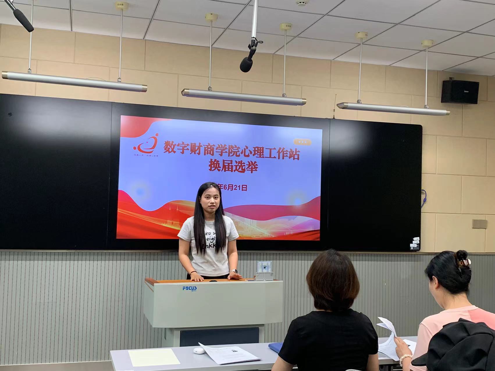 为了深入推动学院心理健康教育的发展,进一步加强心理工作站学生干部队伍的建设,数字财商学院于6月21日上午在厚生楼303教室顺利举行。会议由心理工作站负责老师甄宗波主持,辅导员高洋老师和心理工作站站长刘依凡、副站长张依凡同学受邀参加并担任评委。