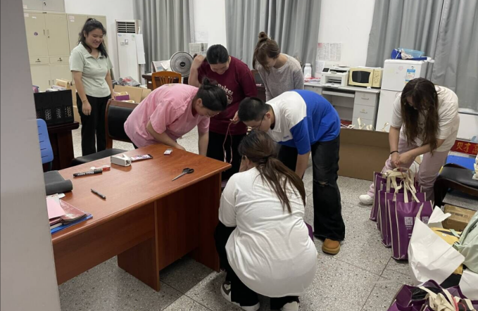 24级新生辅导员团队将海量的学生资料进行了细致地整理与分类,制作档案袋确保每位新生的信息都能准确无误地传递。为了让新生感受到家的温暖,学校学生工作处特别为每位新生定制了暖心T恤,辅导员们根据每位新生的尺码精心分类,并按照宿舍分配情况打包,将在迎新期间亲自走访宿舍,进行慰问与指导,直接将这份心意送到每一位新生的手中,确保每位新生都能感受到学院的关怀与温暖。