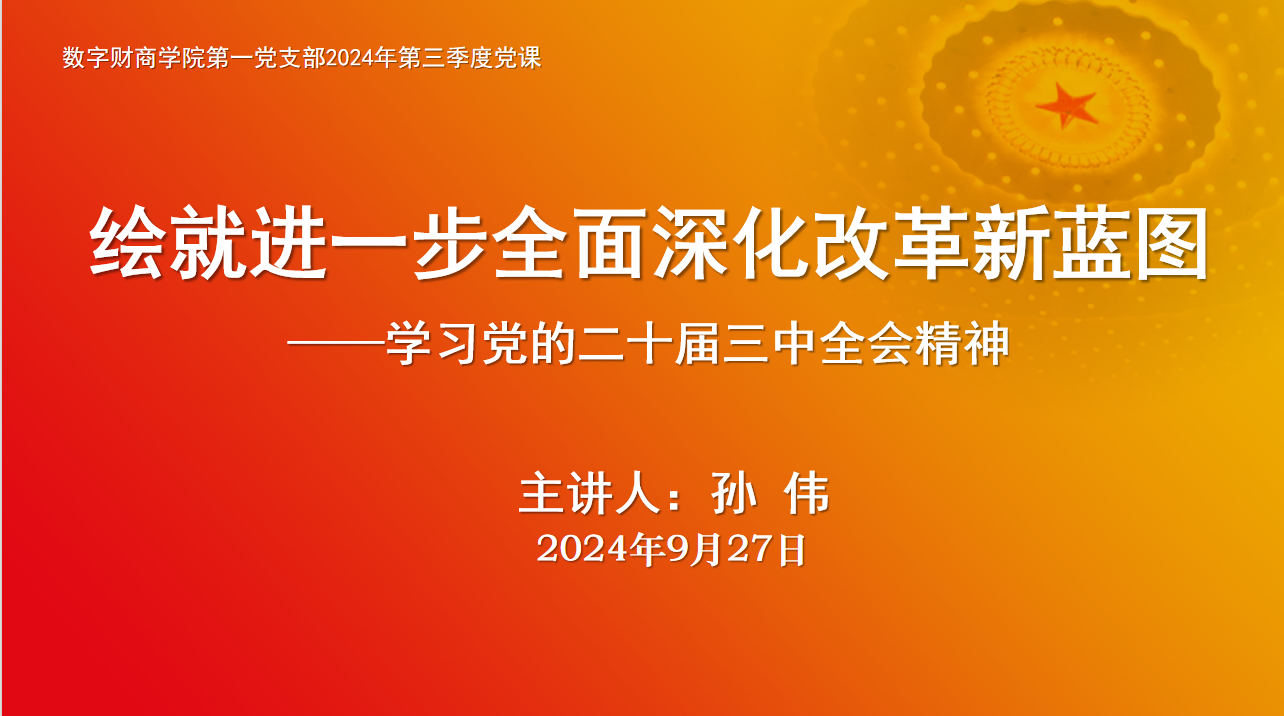 为深入学习贯彻党的二十届三中全会精神,进一步凝聚共识,9月27日下午,米兰平台党总支第一党支部通过腾讯会议开展了主题为“绘就进一步全面深化改革新蓝图”的第三季度党课学习。本次党课由支部统战委员孙伟讲授,支部全体党员同志参加学习。