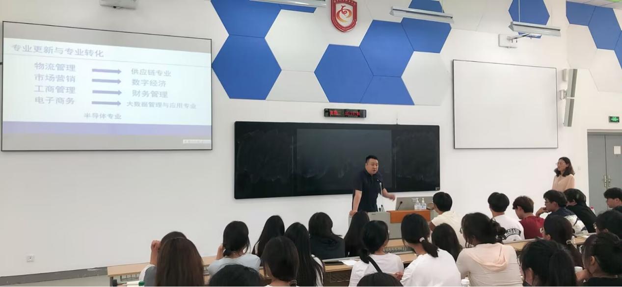 2024年9月24日下午两点,2024级跨境电子商务新生专业教育在敏行楼101教室顺利开展。跨境电子商务专业负责人滕静涛、专业教学团队专任教师王倍和行业导师杨立协同做主题为“买全球,卖全球,你准备好了吗”专业讲座,商贸物流教研室主任许利娜、“3+2”班的班主任闻知九参加了此次活动。同时,本次教育活动还安排了优秀学长录制视频,分享他们的升学以及就业的成长故事。