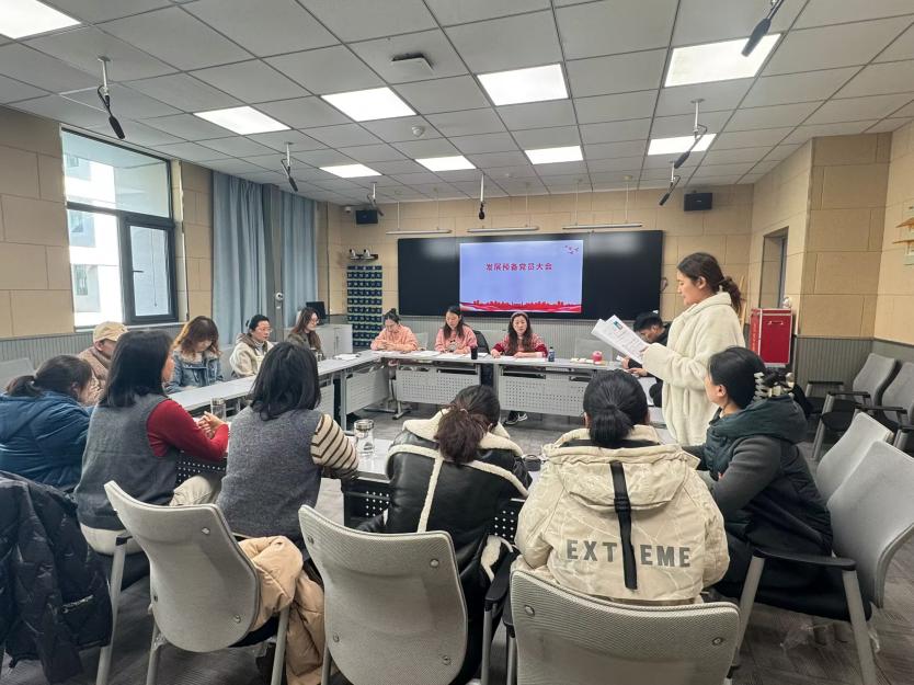 支部党员大会严格按照党员发展程序,对预备党员转正及接收预备党员事宜进行了审议。首先,预备党员周念琪老师全面汇报了自己在预备期间在思想、学习、工作和生活等方面的表现,充分展现了对党的忠诚和对教育事业的坚定信念,以及在预备期间所取得的进步和成绩。入党介绍人也分别介绍了周老师在预备期间的考察情况,并发表了意见。与会党员经过充分讨论和无记名投票表决,一致同意周念琪同志按期转正。随后,沈文汇等4位同学依次宣读自己的入党志愿书,向党组织汇报自己对党的认识、入党动机、个人经历、现实表现以及今后的决心和努力方向,表达着同学们积极向党组织靠拢的决心和意愿。接着,4名同学的入党培养联系人分别介绍她们的入党培养过程,并对其在政治思想、道德品质、工作表现和学习成绩等方面的表现给予评价,给予肯定的同时也指出不足,会议对新发展的预备党员进行了严格审查,通过民主评议,全票通过了接收沈文汇等4名同志为预备党员的决议。他们的加入为党支部注入了新的活力和血液,进一步壮大了党员队伍。