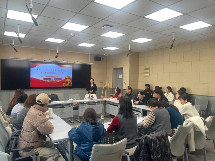 然后,全体党员共同学习了近期党的重要政策文件和习近平总书记的重要讲话精神,深入领会了党的路线方针政策,进一步提高了政治理论水平和思想觉悟。支部宣传委员张淑静同志以《党的二十届三中全会精神引领下推动职业教育现代化改革》为题,为全体党员上了一堂生动的主题党课。她从读懂党的二十届三中全会精神、深化教育综合改革的重大意义以及职业教育如何落实三中全会精神三个方面展开,鼓励党员们要时刻牢记自己的身份和责任,不断提高政治站位,积极探索教育教学规律,成为“四有”好老师,确保党的教育方针在高职院校得到贯彻落实,进一步发挥党组织的战斗堡垒作用和党员的先锋模范作用,为培养社会主义建设者和接班人贡献力量。
