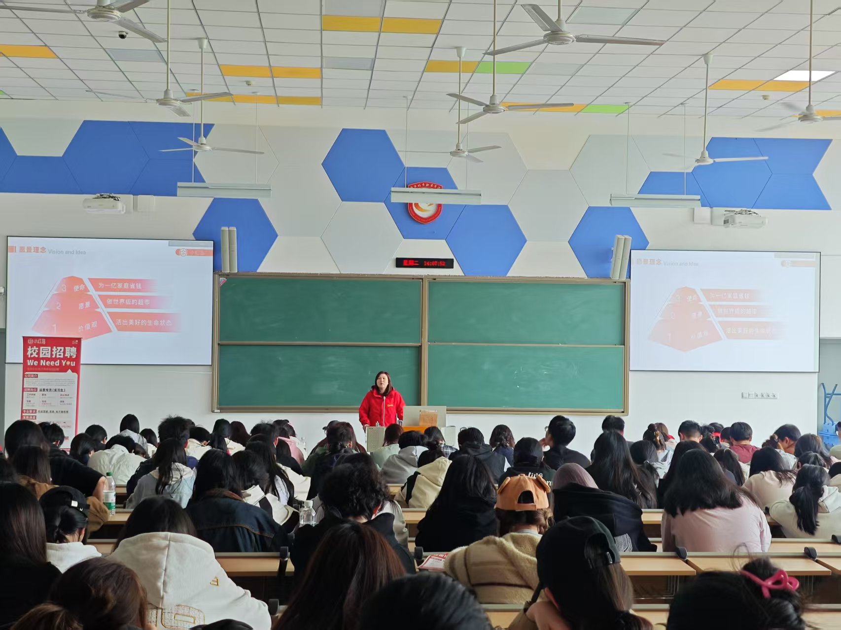 此次宣讲会特别邀请到了南京小红岛超市资深人事经理梁珊珊女士。梁女士以其丰富的行业经验和专业素养,为同学们带来了一场别开生面的职业指导盛宴。