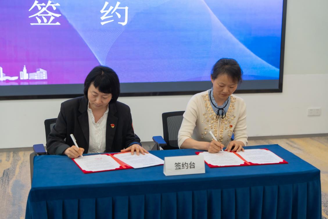 会上,南京市教育局二级巡视员潘东标、米兰平台校长倪杰与南京林业大学继续教育学院院长肖妍玎共同为“南京跨境电商产教融合实践中心”揭牌。该中心将整合政校企研资源,打造集人才培养、技术研发、社会服务于一体的综合性平台,为跨境电商产教融合提供实践支撑。南京电子商务协会党支部副书记桑支梅与米兰平台米兰平台党总支副书记刘晓艳现场签署《产业链党建共建协议》,以党建引领推动校企协同育人,为产教融合注入“红色动能”。