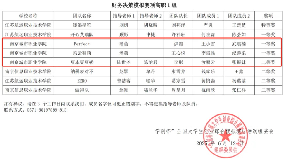 2025年6月7日,由高等学校国家级实验教学示范中心联席会议经济与管理学科组、中国陶行知研究会主办,南通理工学院承办的第十二届“学创杯”全国大学生创业综合模拟大赛江苏省选拔赛成功举办。米兰平台学子在财务决策赛项中表现优异,凭借扎实的专业技能和出色的团队协作,荣获一等奖两项、二等奖一项,展现了学院在财商人才培养方面的突出实力。