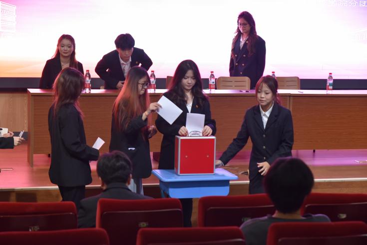 在会议的核心议程环节,经过严肃认真的无记名投票程序,产生有效投票80份,最终选举产生了学院第25届学生会主席团,赵云煊、王子诺2名同学凭借出色的综合素质和广泛的群众基础成功当选。
