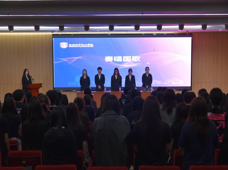 大会在庄严的国歌声中正式开幕。周念琪老师在开幕致辞中,对上一届学生会的工作给予了高度评价,特别肯定了他们在专业学风建设、学科竞赛组织和学生生活服务等方面取得的显著成效。她强调,新一届学生会要继续立足院级服务这一根本定位,更精准地对接同学们的学业需求与生活难题,切实发挥好桥梁纽带作用。