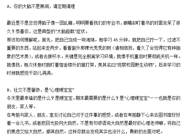 此次征文活动鼓励学子们跳出焦虑的漩涡,用笔墨记录与压力共处的点滴:有的同学分享了亲测有效的解压小技巧,从“番茄工作法”到“正念呼吸指南”干货满满;有的同学以书信形式展开自我对谈,在字里行间与焦虑和解、为自己鼓劲;还有的同学用幽默风趣的笔触调侃备考日常,让紧绷的氛围多了份轻松笑意。书写的过程既是主动表达,更是自我疗愈,活动一经推出便得到学子们的积极响应。“备考的日子里总有感到迷茫的时候,这个‘树洞’让我可以把心里的感受尽情写出来,既是释放,也是一种梳理。”24级现代物流管理专业学生李同学说道。不少学生表示,已在整理专属解压心得,期待通过文字与同学们交流互动,让这个冬天因分享而更加温暖。